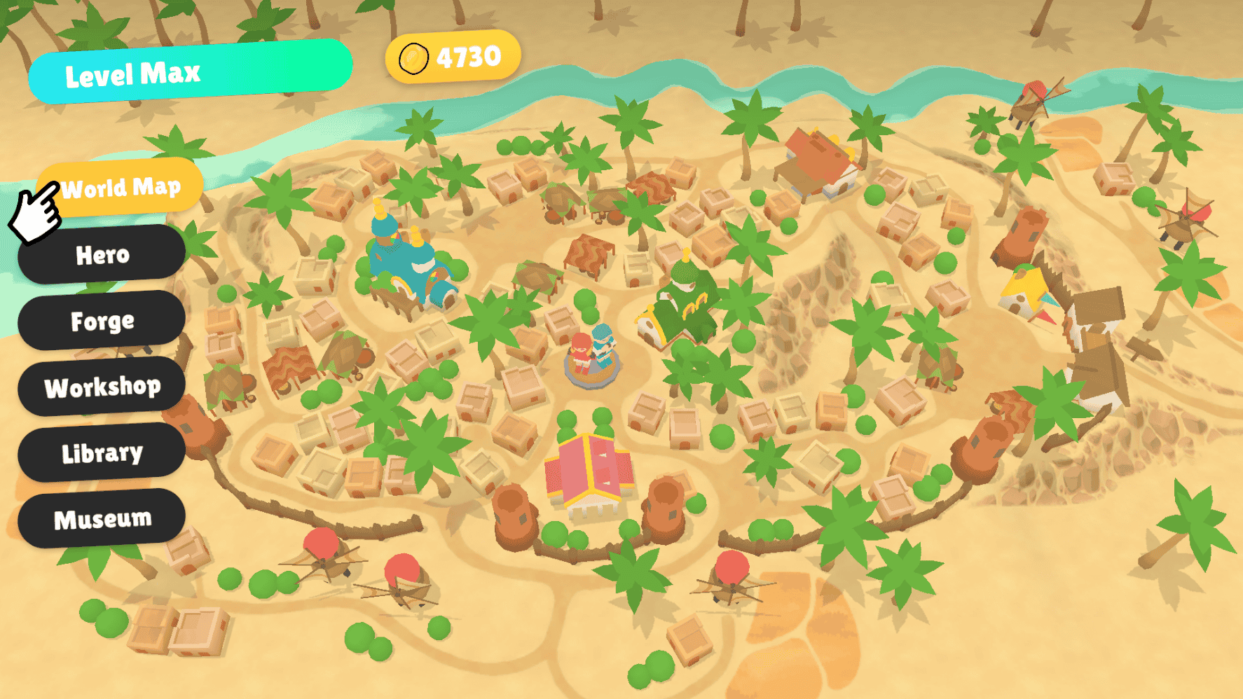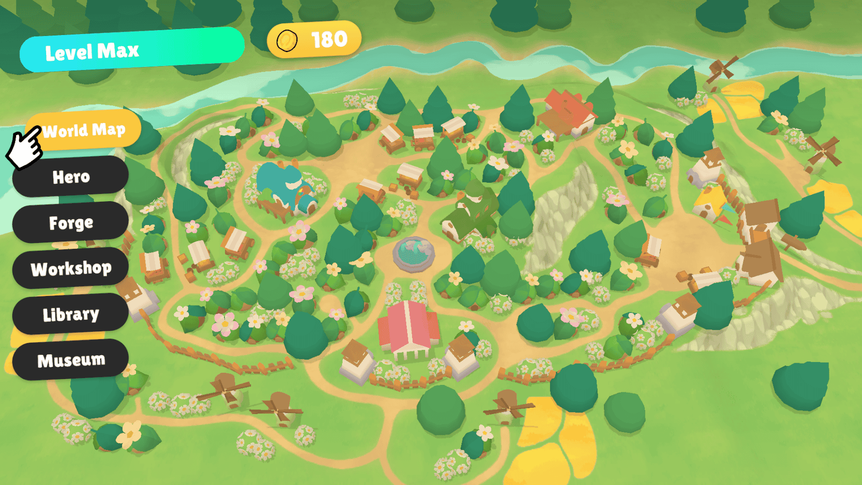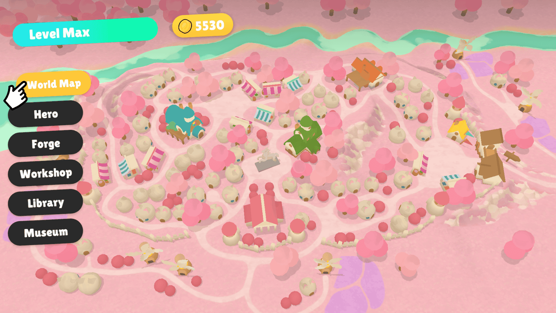 The main hub is a village that grows alongside the player's progression. Leveling up also unlocks skins to change the appearance of each type of building and decor. I designed, modeled and textured everything.